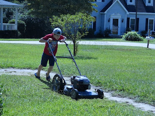 The boys and I got over there a couple of times but I didn't feel like I got a lot done - cleaning mostly. But, yesterday, Franklin & I loaded the mower in the van and headed over in the morning. Between the two of us we were able to get it in and out of the van. :) Franklin is so excited to start his own lawn mowing services and if you have a yard that doesn't have any thick grass, he might be able to do it. He was so tickled to get the mower started on his own. But, that thick grass defeated him. :(