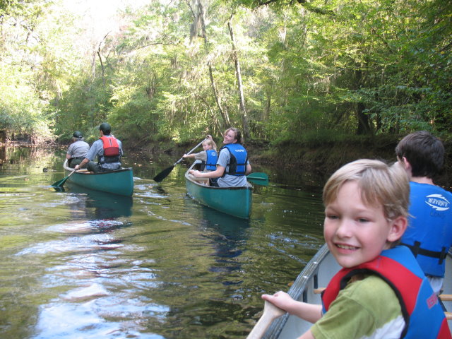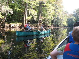 Then.... we went on the much anticipated canoe trip! We headed down the river and turned around and came back. It was a great lesson about team work. Patch & Franklin finally stopped soaking me and we got into a pretty good rythm of working together on the way back up river (stream? It was pretty slow with not much rain lately.)