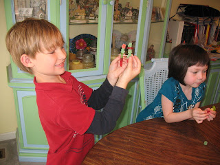 I'll admit it is easier to watch older children and I still love to do some things with them. Today, we had some friends from TKD over while their mom and dad went out for a bit. We made gummy snowmen!