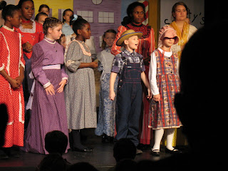 We had some great friends in the play also but I think I'm mostly impressed with Riley who did NOT want to try out and did NOT want to be in the play. I think he had the most fun out of all of them! He was great! His brother and sister were great in the play too and so were Jesse & Chloe! I hope they can all get parts in Annie Jr. if they want them and I'll let friends and family know if they should come by for another play in a few months!
