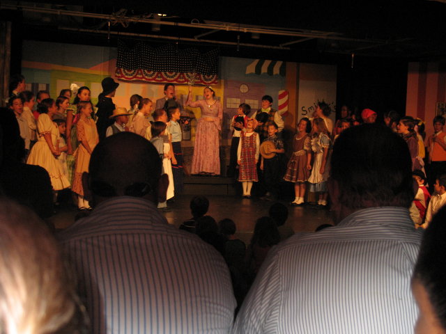 It didn't even bother him that he had a wife in the show - at least I think girls are still fairly yucky in his book. ;-) His wife, Tess was awesome in her role too. She played the part perfectly when she'd grab him by the hand and drag him where ever he needed to be. He seemed to take direction rather well, even from dear old mom. I told him once to make sure he got excited during different parts of the play and I never saw him miss that afterwards. When we went to see the show on Sat. afternoon, I could barely hear him so I'm guessing that for the first 3 shows, they couldn't hear him either. I told him that I was going to peek in and watch him during the last show and that I better hear him all the way in the back of the theater. He did AWESOME! I even teared up a bit - I know, I'm such a sappy mom. Deal with it. ;-)
