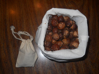 They are Soap Nuts and I'm going to try using them for the laundry! I read that these are how people washed their clothes in the rivers. They also gave me a small bottle of concentrate that I can use to clean other things. Now I want my own soap nut tree! LOL