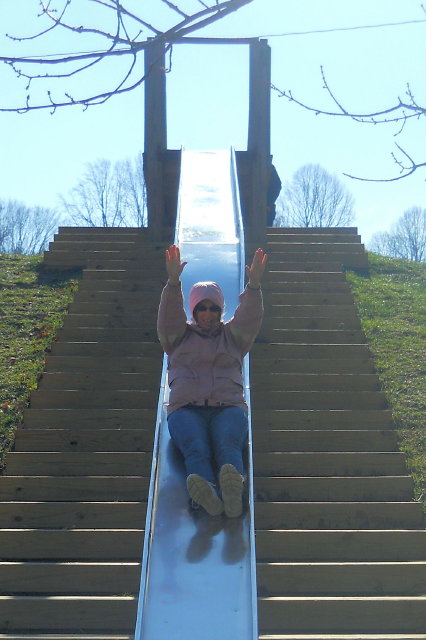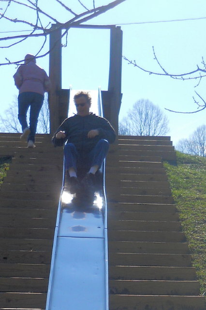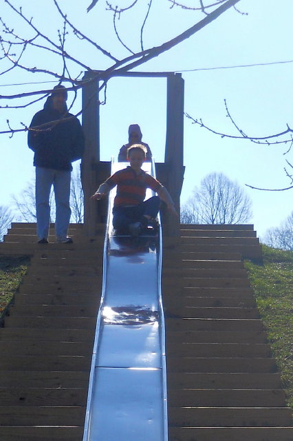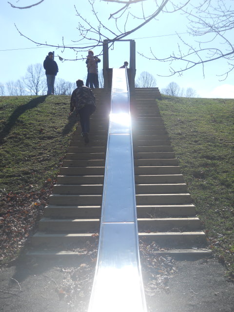 There's always so much to do up there that we can never get everything done but with such a short trip this time, we at least made it to the cheese factory and the giant slide. They've added stairs to the giant slide! And even the big kids like to slide down it...