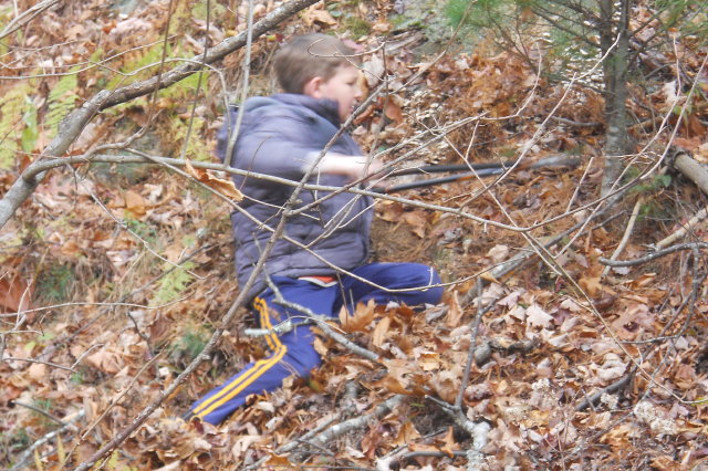 I don't know how many acres they have up there, I think at least 10 but they've built trails all over that we love to get out and hike on. While we're there, we also do a bit of clean up on the trails, sweeping the leaves off so they're not as slippery come May when they open the cabin back up, trimming back some of the over growth along the trails, This time, we added pulling up White Pines that aren't native to the area and even chopping down the bigger ones.
